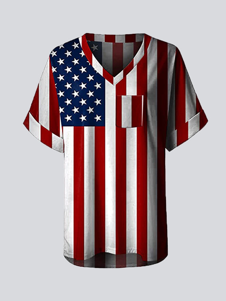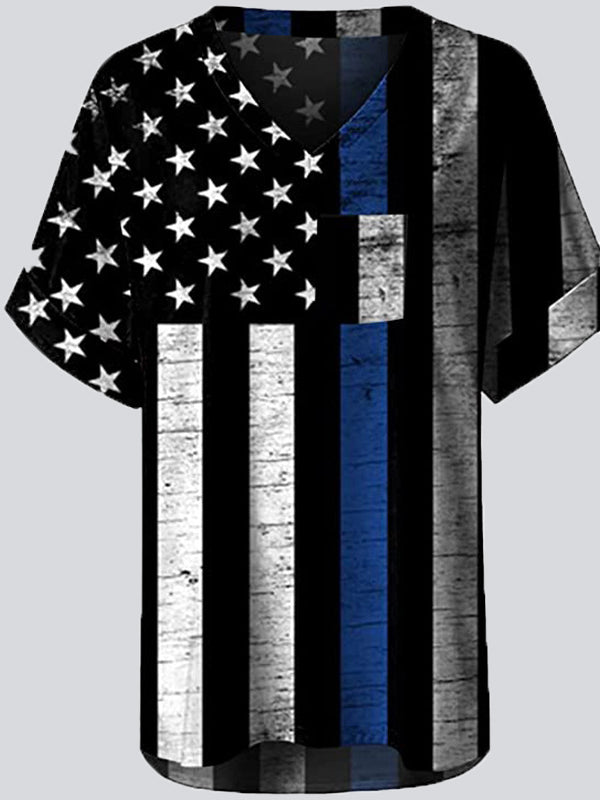 Casual Print V Neck Short Sleeve T-shirt