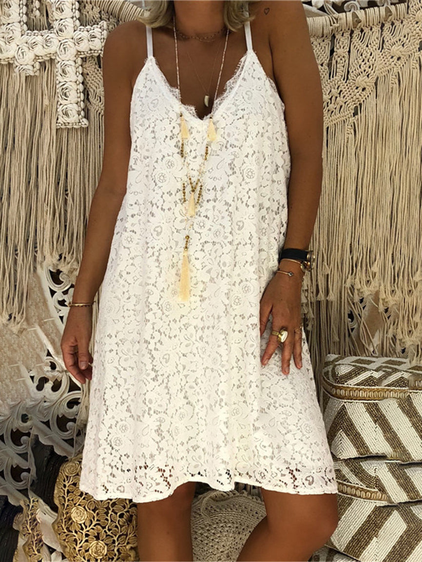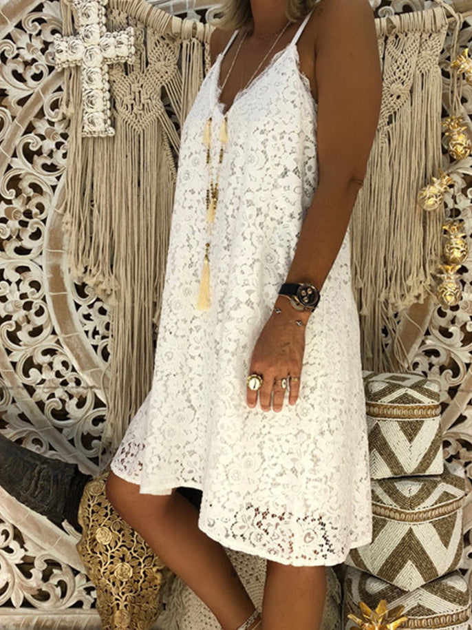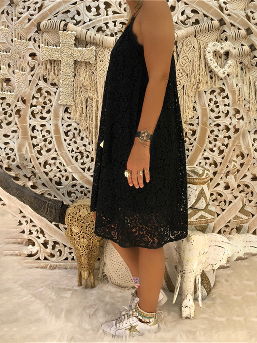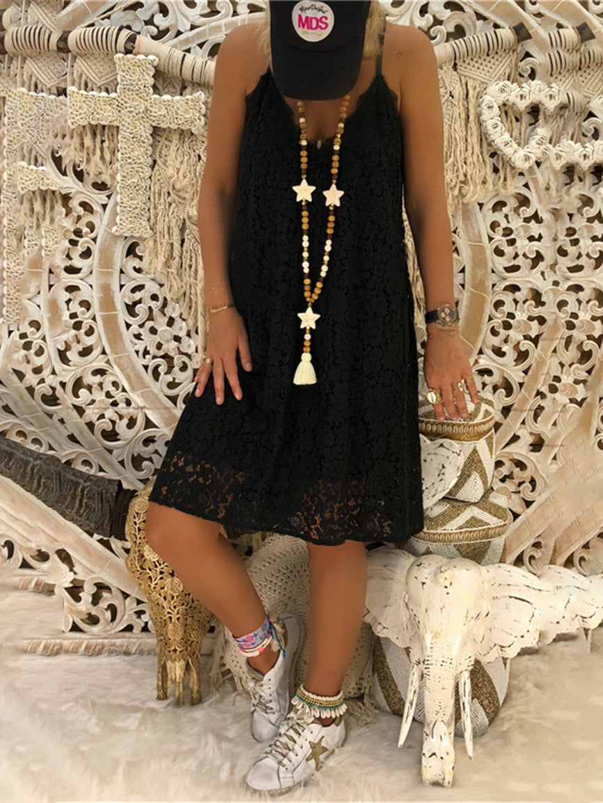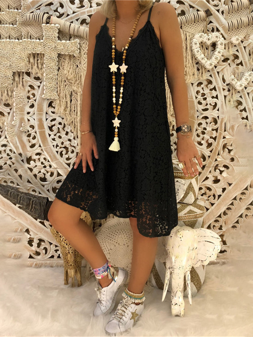 Loose Sleeveless V-neck Suspender Lace Dress