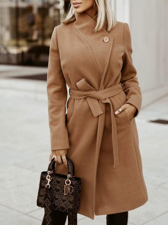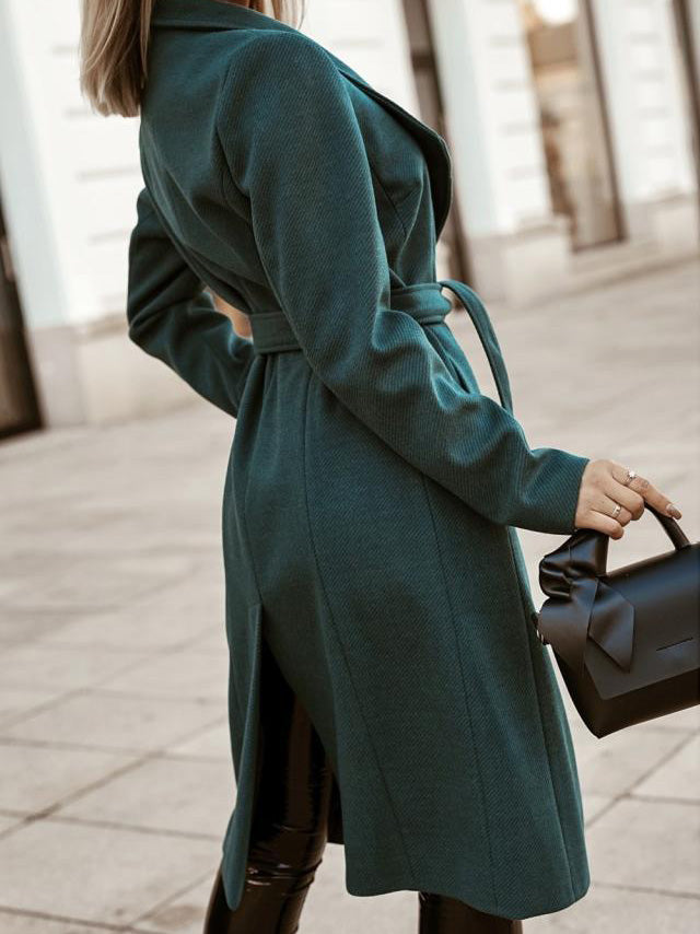 Women's Coats Fashion Belted Long Sleeve Long Woolen Coat