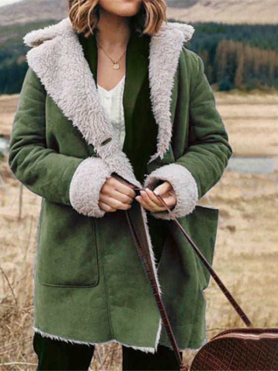 Women's Coats Lapel Long Sleeve Pocket Plush Coats