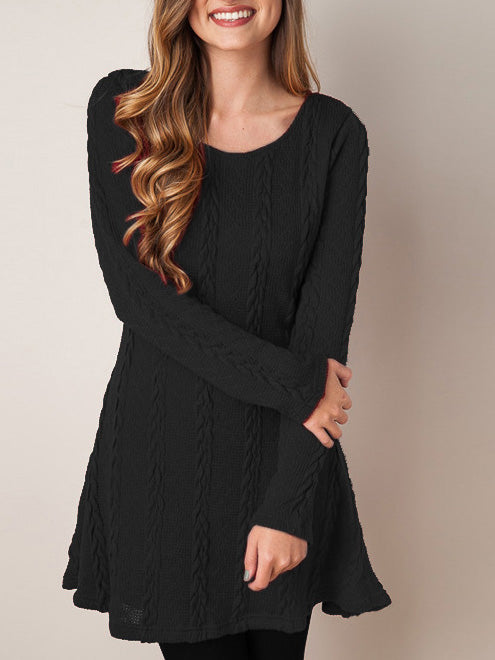 Women's Dresses Round Neck Long Sleeve Sweater Mini Dress