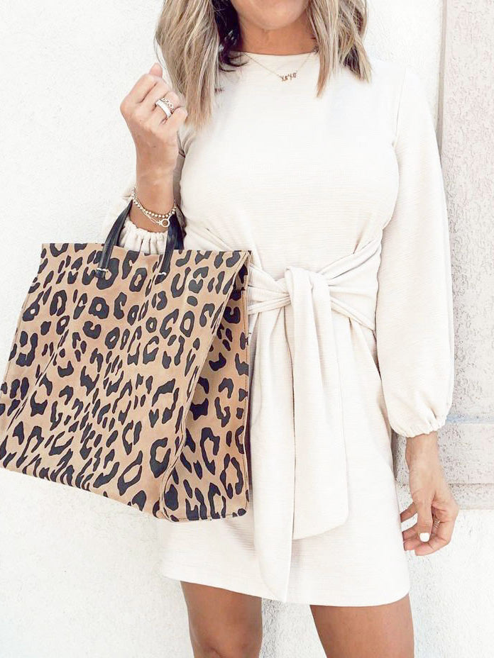 Women's Dresses Round Neck Tie Long Sleeve Dress