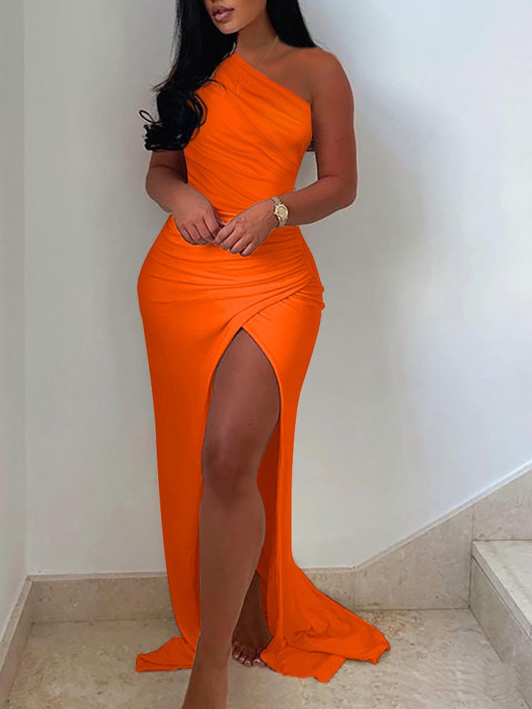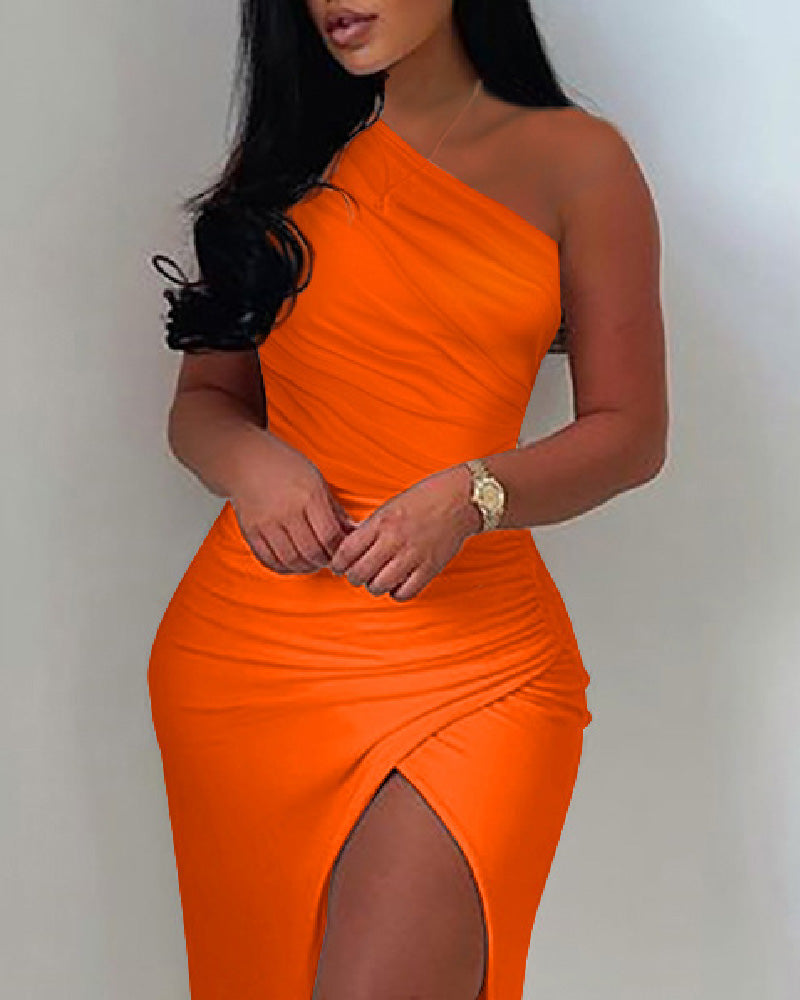 Women's Dresses Sloping Shoulder Slit Slim Dress