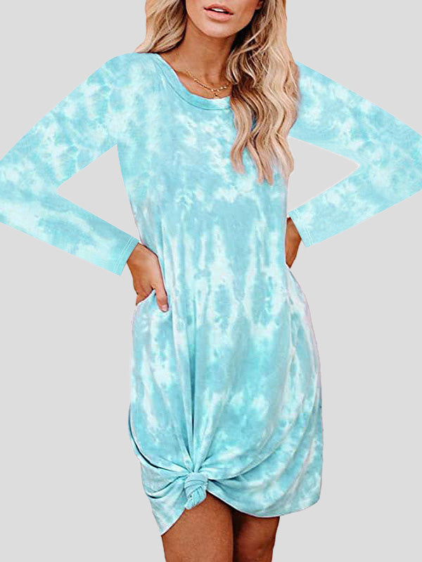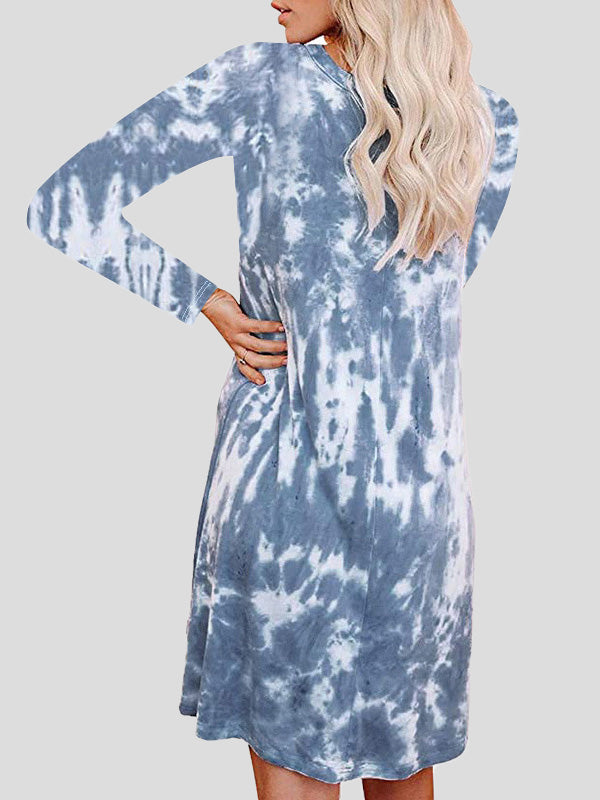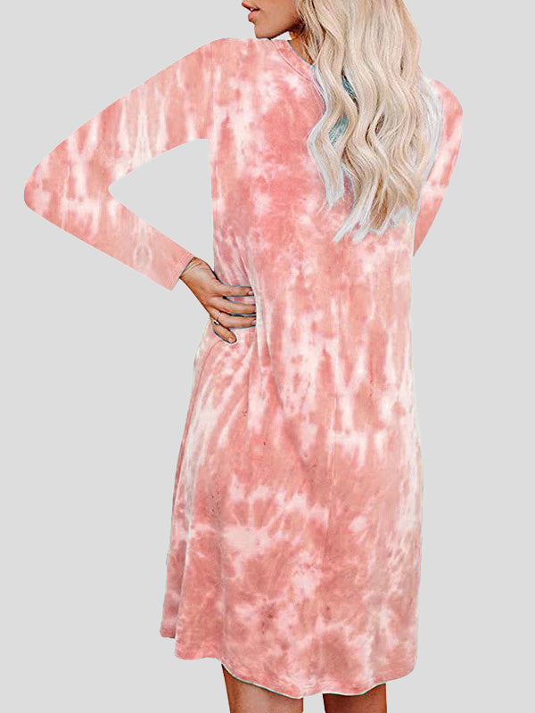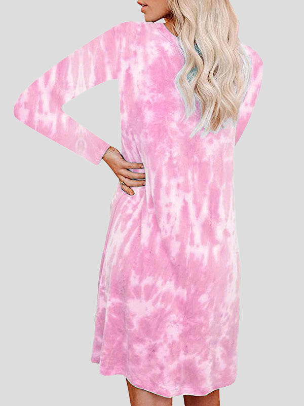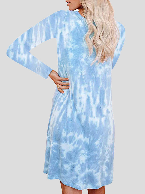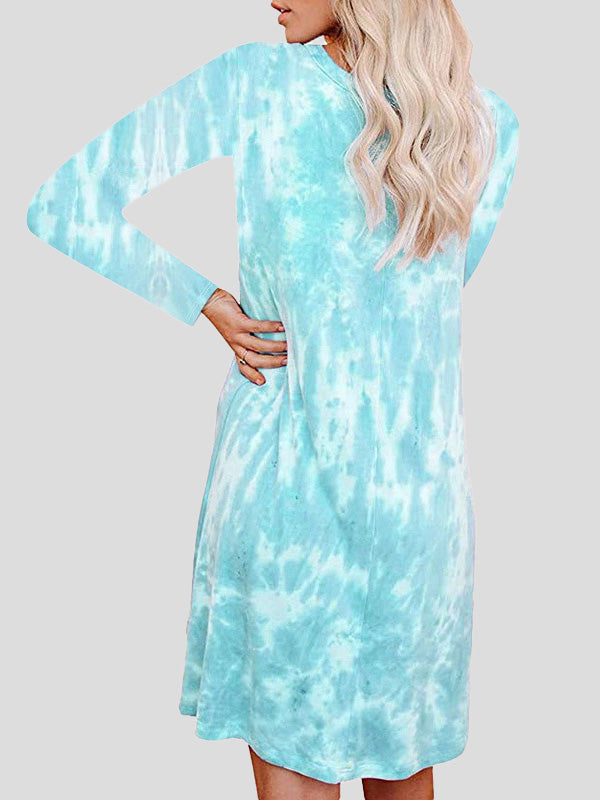 Women's Dresses Tie-Dye Printed Loose Long Sleeve Dress